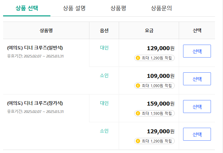 🎟 이랜드 디너 크루즈 가격 & 좌석 옵션