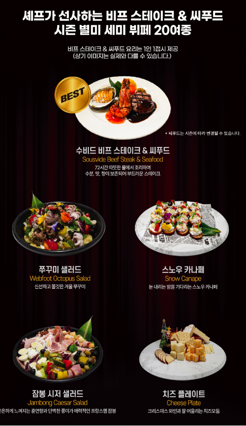 ✔ 랍스터 테일, 대게, 초밥 & 사시미