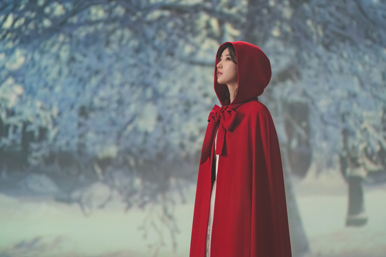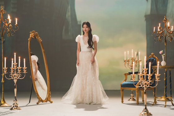 순백의 드레스를 입고 백설공주와 같은 모습으로 등장하여 몰입감을 높였습니다.