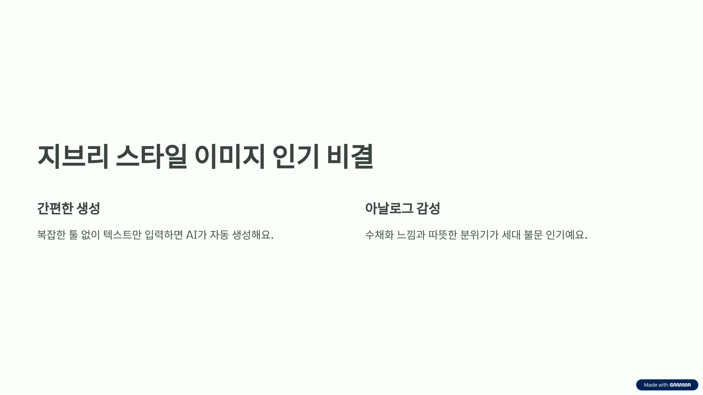 - 프롬프트에 감성적인 단어(예: 따뜻한, 그리운, 동화 같은)를 넣으면 더 감각적인 결과 가능