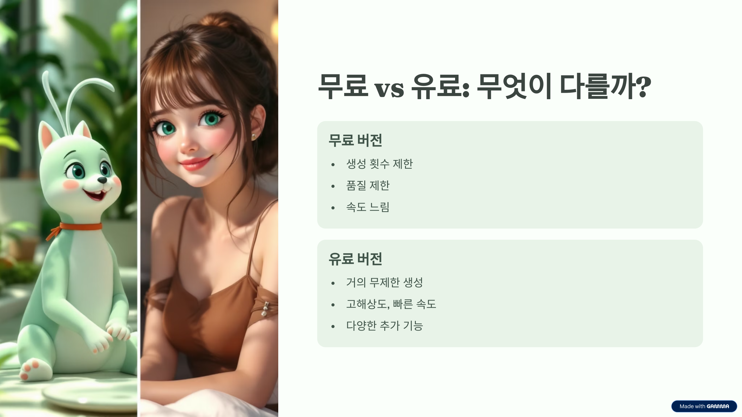A. 꼭 그렇진 않아요. 무료 버전으로도 생성은 가능하지만 횟수 제한과 품질 측면에서 차이가 있어요.