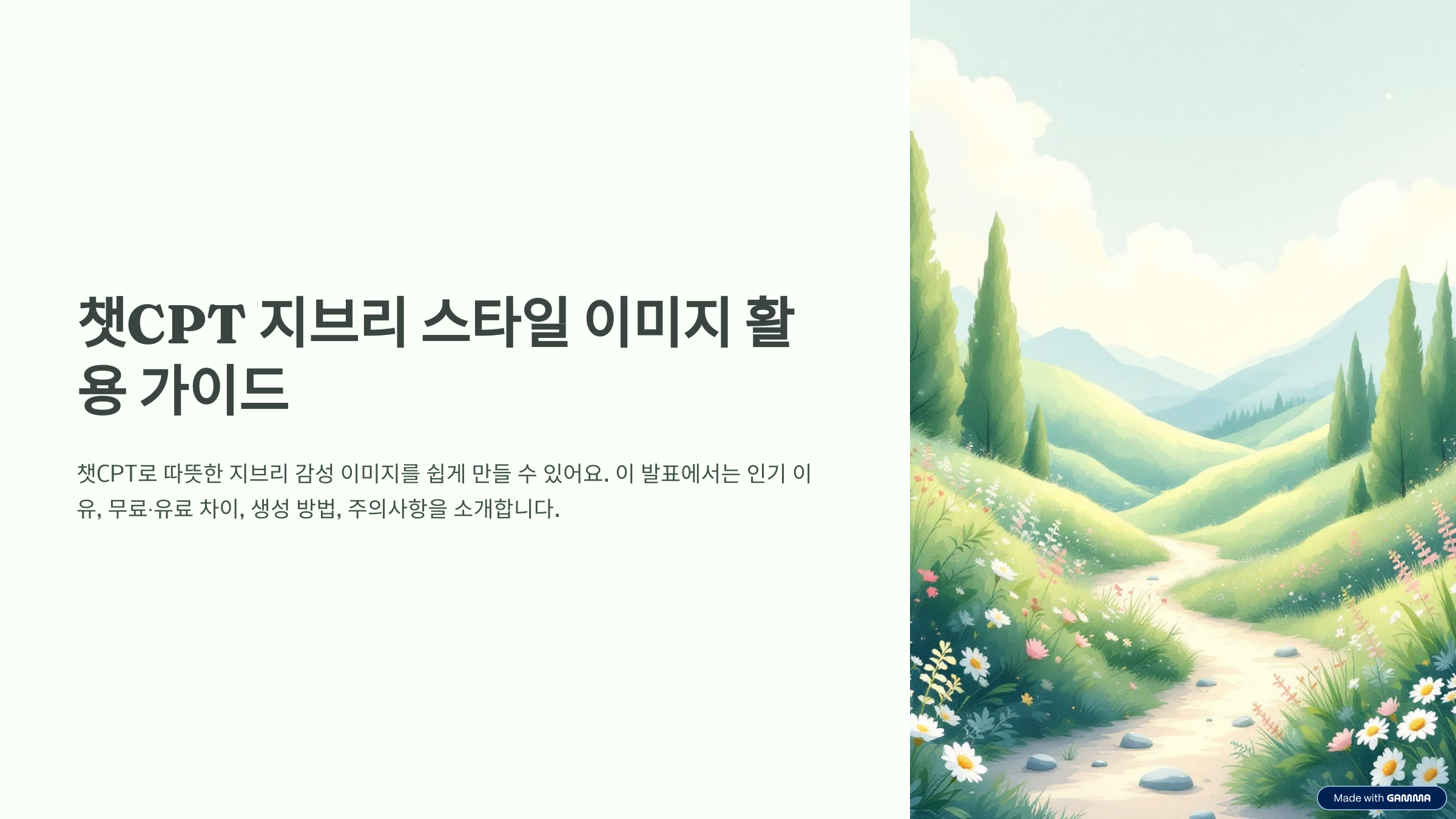 챗CPT에서 제공하는 지브리 스타일 이미지 생성 기능이 요즘 큰 주목을 받고 있어요. 애니메이션 특유의 따뜻한 감성을 담은 그림을 AI가 그려주는 만큼, SNS나 커뮤니티를 중심으로 많은 관심을 끌고 있는데요. 오늘은 챗CPT를 활용해 지브리풍 이미지를 만들 때 유료와 무료의 차이점, 생성 팁, 활용법까지 상세히 정리해볼게요.