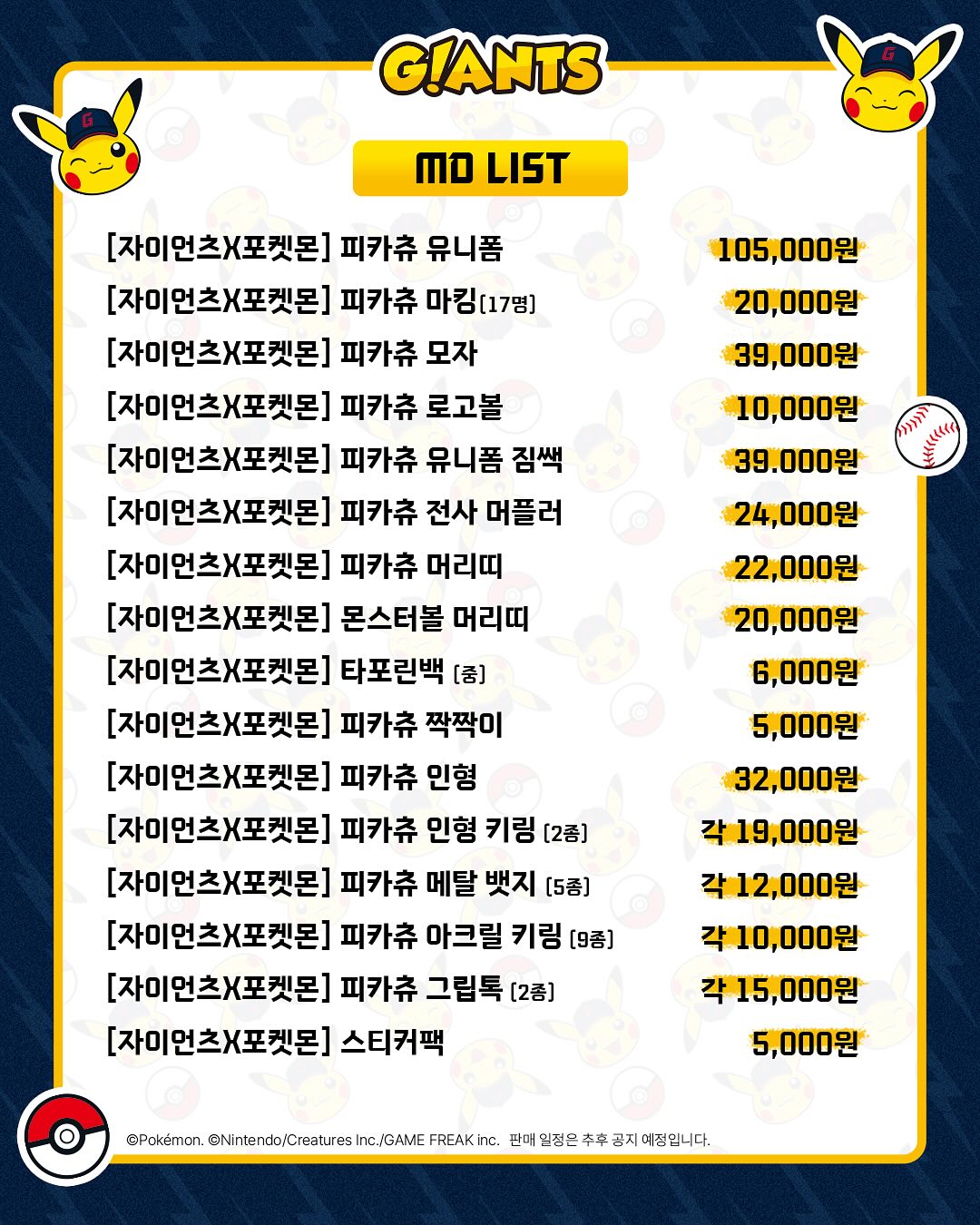 롯데자이언츠 피카츄 포켓몬 유니폼 구매 방법 굿즈 가격 안내입니다.