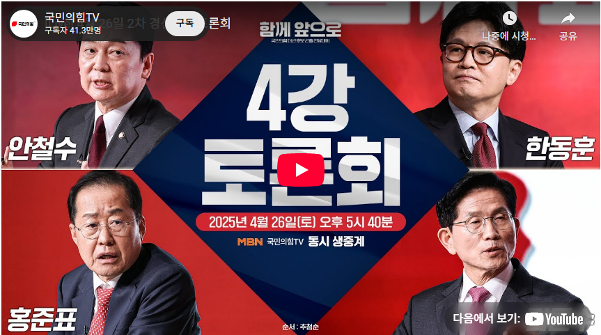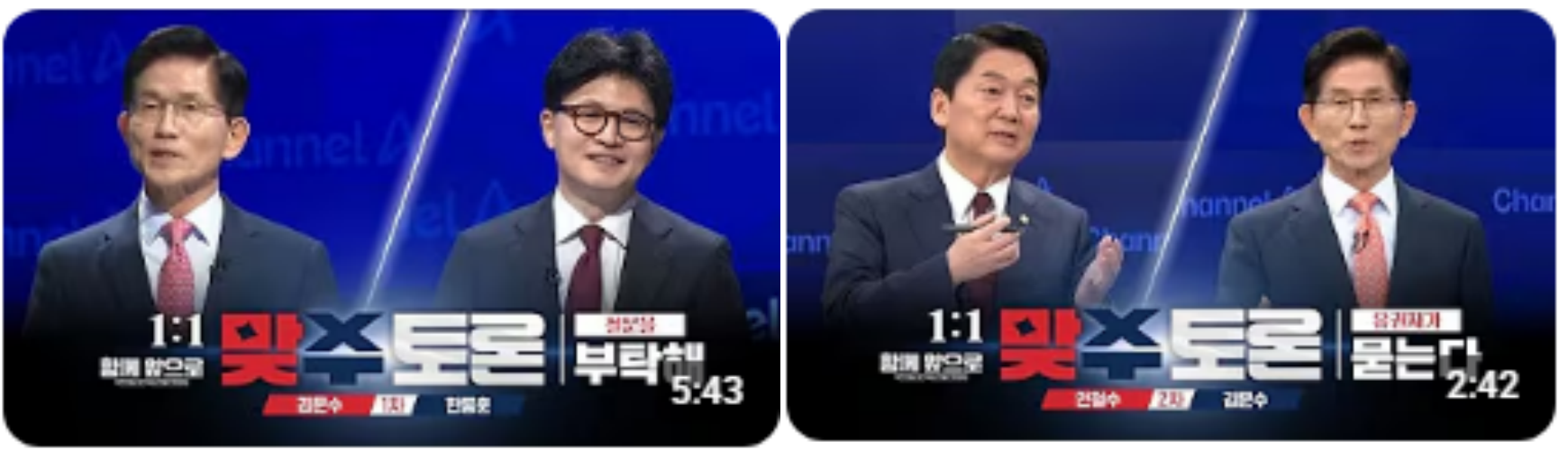 - 4월 24일: 김문수 vs 한동훈, 안철수 vs 김문수 (채널A 생중계)