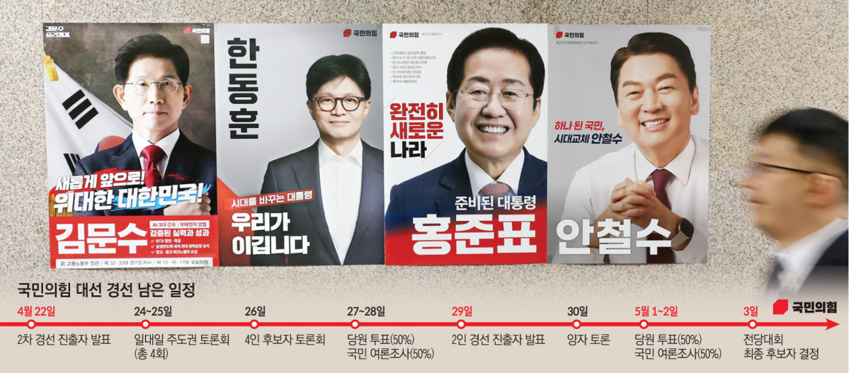 국민의힘 2차 경선 결과는 4월 29일 발표될 예정이에요. 이번 경선은 당원 투표 50%, 국민 여론조사 50%를 합산하는 방식으로 진행되죠. 과연 당심과 민심을 모두 사로잡을 후보는 누구일까요?