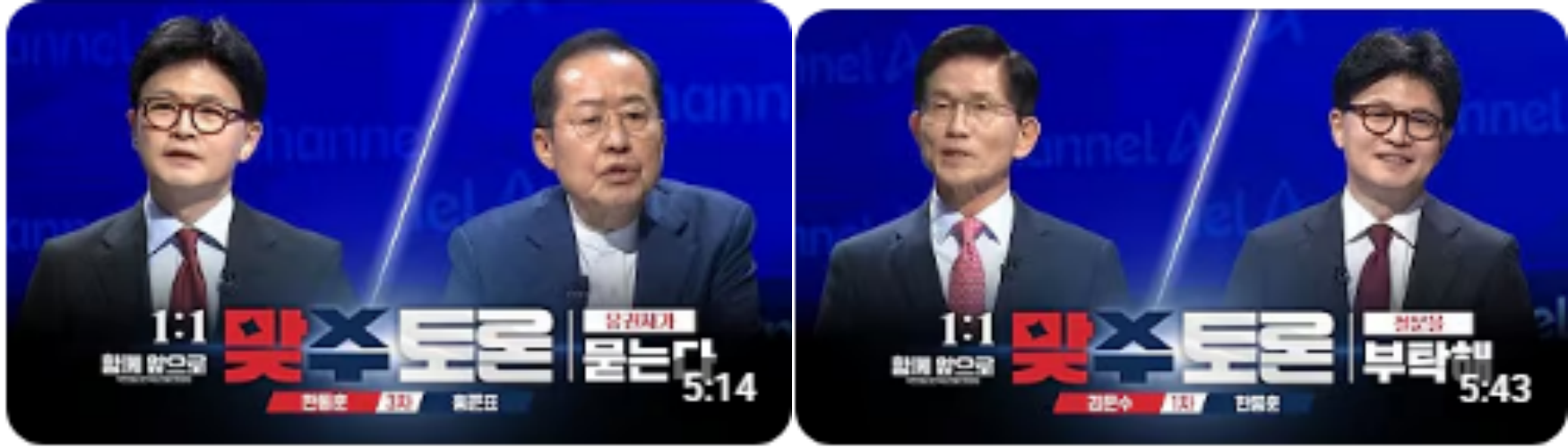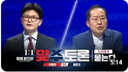 - 4월 25일: 한동훈 vs 홍준표, 홍준표 vs 한동훈 (채널A 생중계)