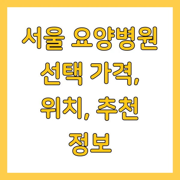 서울 요양병원 선택 가이드: 가격, 위치, 추천 정보 꼼꼼 비교!