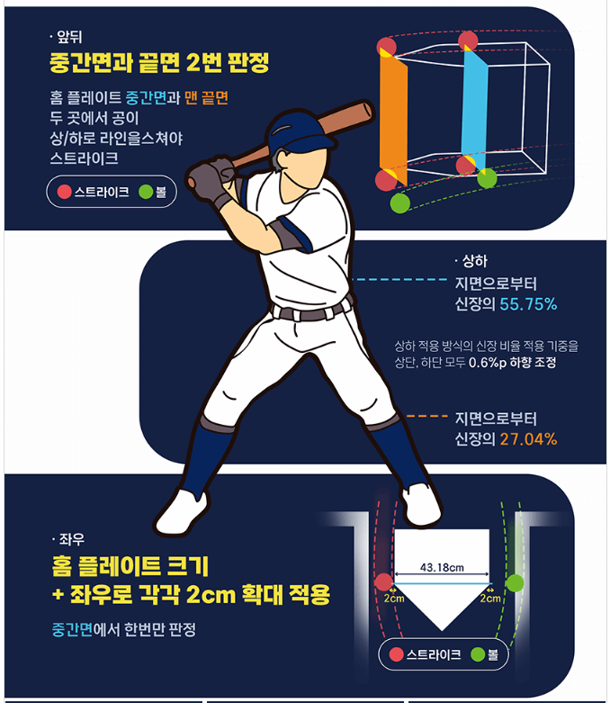 - 타자의 신장에 따라 스트라이크 존이 조정됨