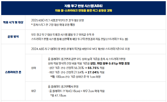 - 스트라이크 존 변경: 상하 0.6% 축소, 좌우 2cm 확대